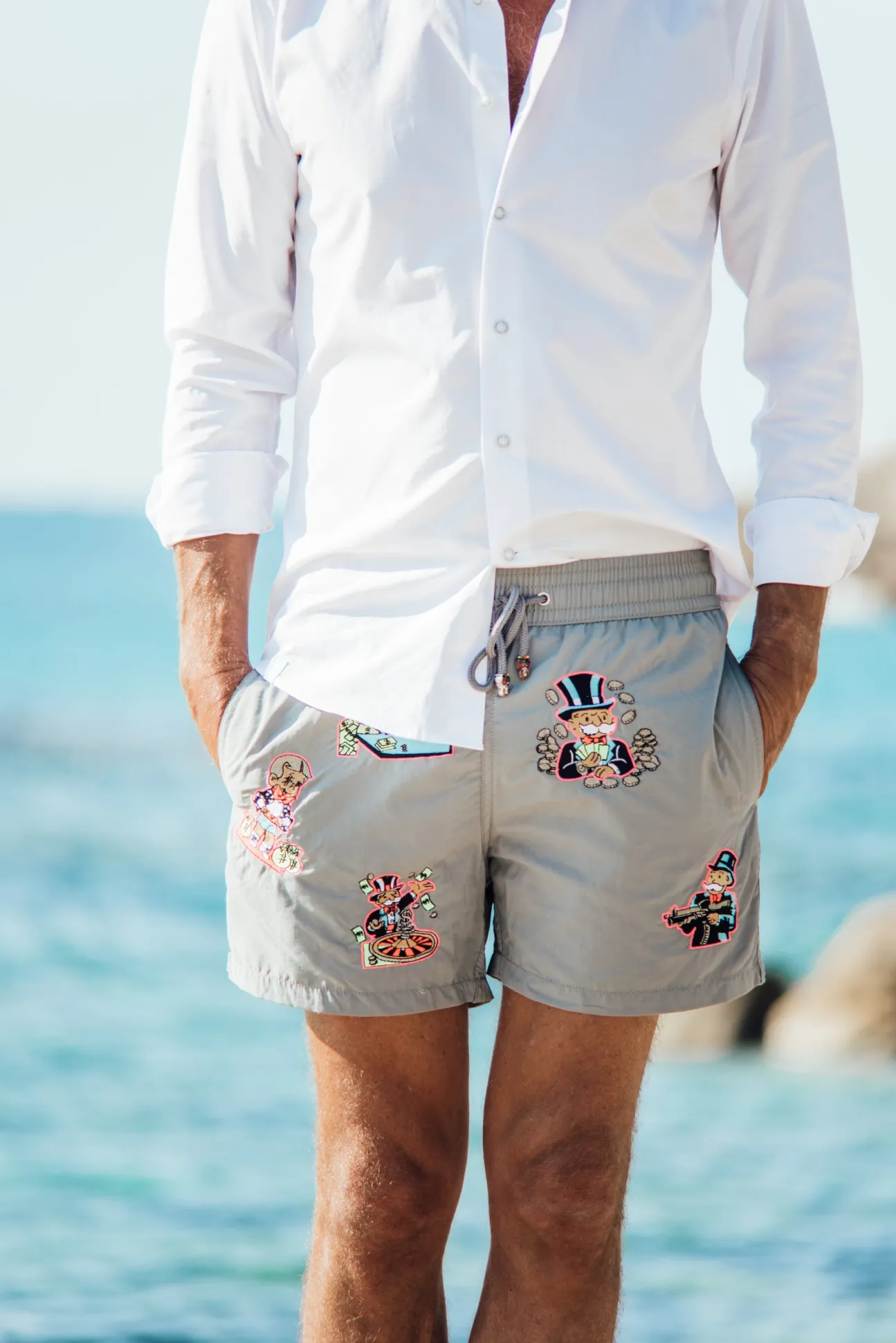 Men swimwear with embroideries all over the piece.